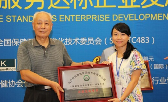 颐而康作为由国家质检总局确定的全国同行业唯一一家“国家级服务业标准化试点单位”,全司集中力量从门店装饰装修,服务流程,产品管理,卫生标准,管理制度等各个方面工作入手,调研,研讨,学习,撰写标准化手册,落实标准要求。在此期间公司全员付出了极大的心血与努力。此次作为国家首批达标单位,我下属长沙颐而康雨芙保健有限责任公司(颐而康万家丽路钻石店)在北京接受“保健服务通用要求国家级通用标准达标单位”授牌,实属名至实归。我公司也将在标准化的工作上继续努力,为全国同行业树立标杆。