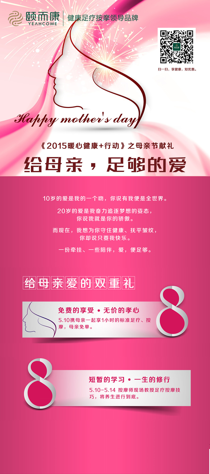 2015.5.10 一年中唯一专属妈妈的这一天,给妈妈多一点陪伴、送妈妈一份健康。您的孝心,颐而康买单!