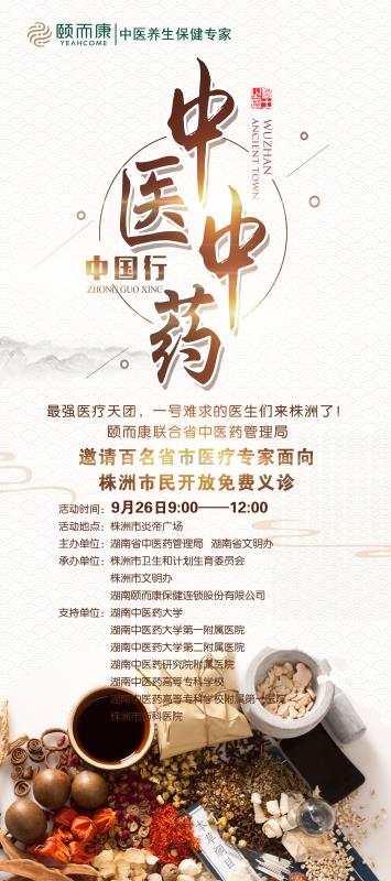 “2017中医中药中国行”湖南站活动将于9月26日正式启动,颐而康作为全国文明单位全程支持活动。